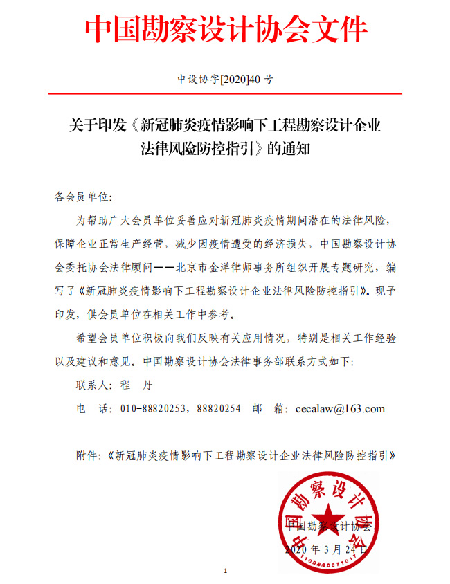 關(guān)于印發(fā)《新冠肺炎疫情影響下工程勘察設(shè)計(jì)企業(yè) 中設(shè)協(xié)字[2020]40號(hào)