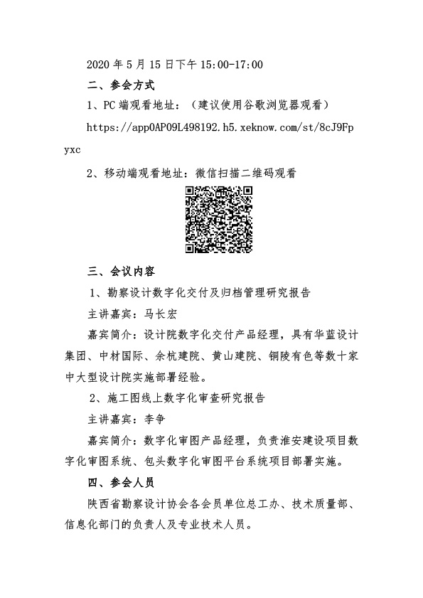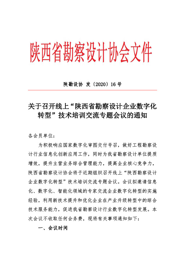 關(guān)于召開線上“陜西省勘察設(shè)計企業(yè)數(shù)字化轉(zhuǎn)型”技術(shù)培訓(xùn)交流專題會議的通知