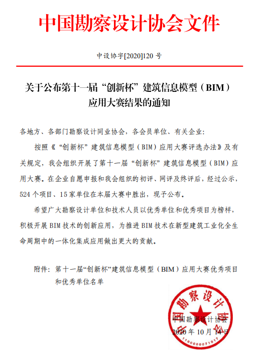 關(guān)于公布第十一屆“創(chuàng)新杯”建筑信息模型(BIM)應(yīng)用大賽結(jié)果的通知