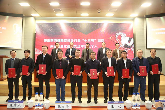 會議還對陜西省工程勘察設(shè)計行業(yè)“十三五”期間實施信息化建設(shè)先進(jìn)單位及個人進(jìn)行了表彰,燕建龍秘書長宣讀了獲獎名單,張文亮理事長、王佐副總經(jīng)理、燕建龍秘書長、信息化工作委員會康琦秘書長、天強管理顧問副總經(jīng)理趙月松為先進(jìn)單位及個人頒獎。