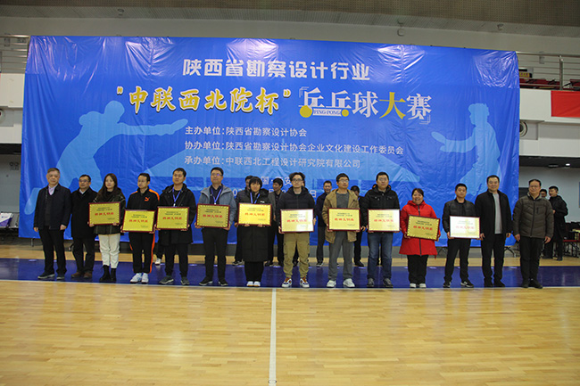 11月29日,經(jīng)過兩天的激烈比拼,陜西省勘察設(shè)計(jì)行業(yè)“中聯(lián)西北院杯”乒乓球大賽圓滿落幕。陜西省水利電力勘測設(shè)計(jì)研究院斬獲桂冠,華陸工程科技有限責(zé)任公司榮獲亞軍,西安建筑科技大學(xué)設(shè)計(jì)研究總院將季軍收入囊中。中聯(lián)西北工程設(shè)計(jì)研究院有限公司榮獲優(yōu)秀組織獎(jiǎng)。