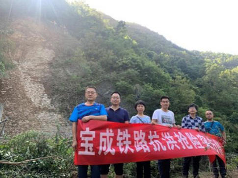 連日來,陜南地區(qū)普降大到暴雨,寶成線最大雨量達215.3mm。7月24日10時30分許,寶成鐵路高潭子~巨亭區(qū)間K253+220~+230處,線路右側山體發(fā)生崩塌落石,約100方落石堆積在軌道上,嚴重危害行車安全。接到水害消息后,西安院立即啟動水害應急搶險預案,組建寶成鐵路抗洪搶險突擊隊,派出先遣隊員趙振榮同志、楊偉同志立刻奔赴水害現(xiàn)場,與中國鐵路西安局集團公司、漢中工務段等主管領導及相關負責人一同開展抗洪應急搶險,盡快恢復水害線路。期間山坡石塊不停滾落,隊員們戰(zhàn)勝山高、便道泥濘、腳下濕滑等困難,冒雨爬上幾乎垂直的陡峻山坡,邊爬山邊開辟上山小道;迅速分析山體崩塌原因,出謀劃策,指導搶險工作。初步?jīng)Q定采用從山頂向下對坡面進行刷方、減載、遮蓋、清理崩塌體的應急方案,爭分奪秒搶通線路。經(jīng)過300余名搶險人員10多個小時的連續(xù)冒雨奮戰(zhàn),于當日21時07分順利搶通線路。