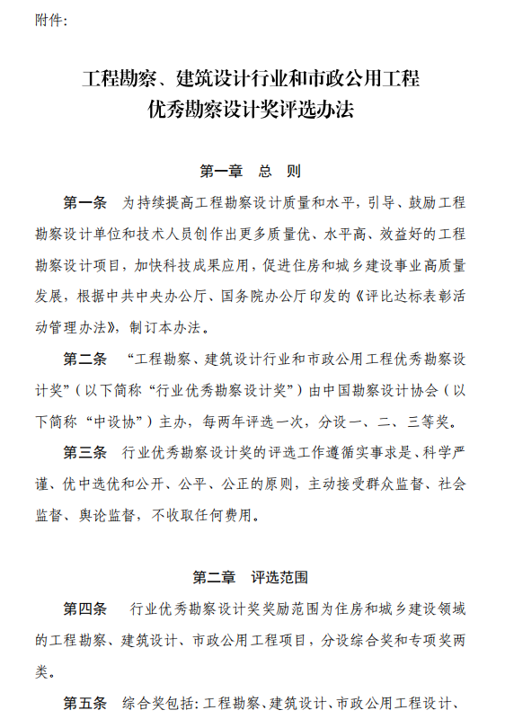 關(guān)于印發(fā)《工程勘察、建筑設(shè)計行業(yè)和市政公用工程優(yōu)秀勘察設(shè)計獎評選辦法》的通知