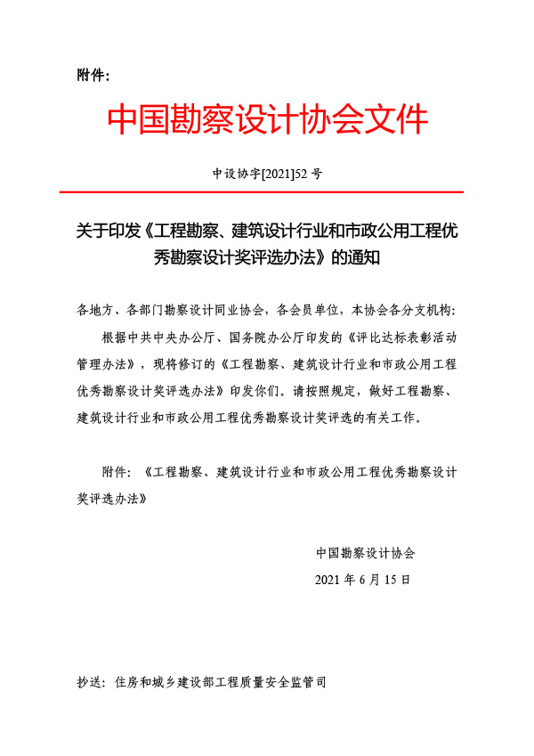 關(guān)于轉(zhuǎn)發(fā)中國(guó)勘察設(shè)計(jì)協(xié)會(huì) 《關(guān)于印發(fā)〈工程勘察、建筑設(shè)計(jì)行業(yè)和市 政公用工程優(yōu)秀勘察設(shè)計(jì)獎(jiǎng)評(píng)選辦法〉的通知》的通知