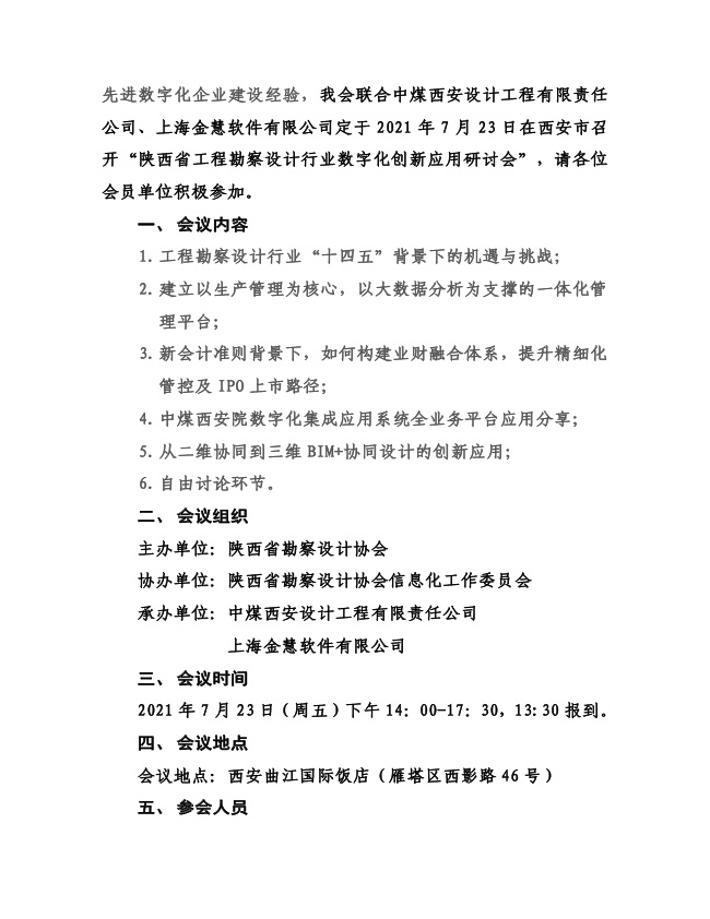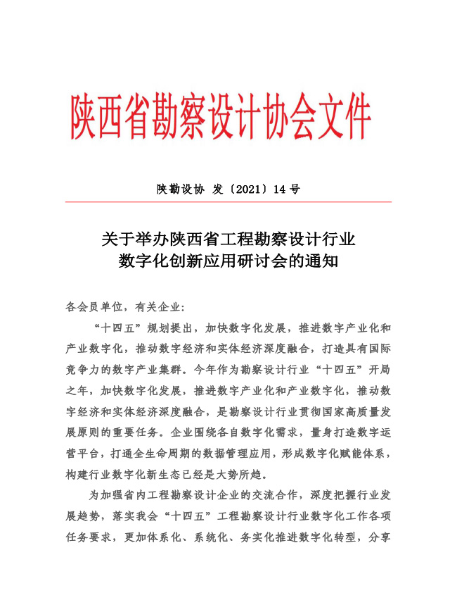 關(guān)于舉辦陜西省工程勘察設(shè)計(jì)行業(yè)數(shù)字化創(chuàng)新應(yīng)用研討會(huì)的通知