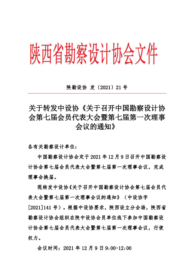 2021年21號文-中勘協(xié)第屆會員代表大會暨第七屆第一次理事會的通知