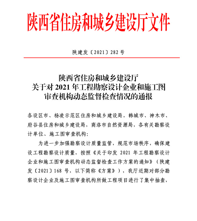 關(guān)于2021年工程勘察設(shè)計企業(yè)和施工圖審查機構(gòu)動態(tài)監(jiān)督檢查情況的通報