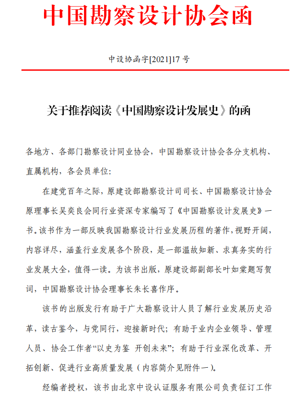 關(guān)于推薦閱讀《中國(guó)勘察設(shè)計(jì)發(fā)展史》的函